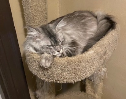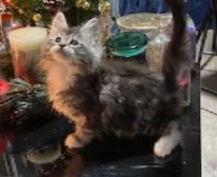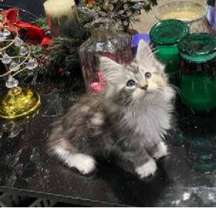 We have just retired MaineVu AfrtheGoldRush of Kennebec, a silver ticked tabby spay. She is sweet and affectionate, gets along with other cats and was born 09/05/21.